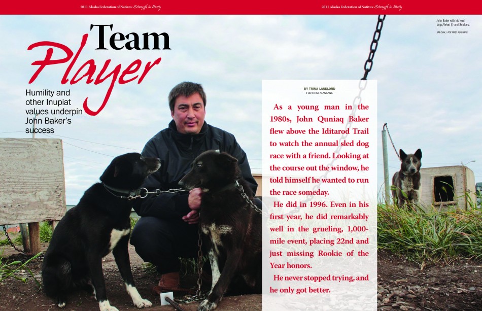 The October-November issue of First Alaskans came out on time and was awesome as ever due to a great group of people, despite it’s unexpected change of hands in August. Iditarod hero John Baker was featured on the cover among many other greats in the Alaska Native community featured throughout the magazine. I’m so excited to continue on this publication as a freelance designer. Good things are ahead. Keep watching for the next issue due out in early January.