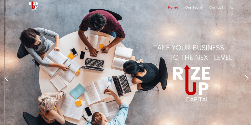 In 2017, I was asked to create a logo, branding and develop a user interface for a startup called Rize Up Capital. Below is the logo in its original form and a reverse version for social media. Above is its application on the homepage slider of the website.